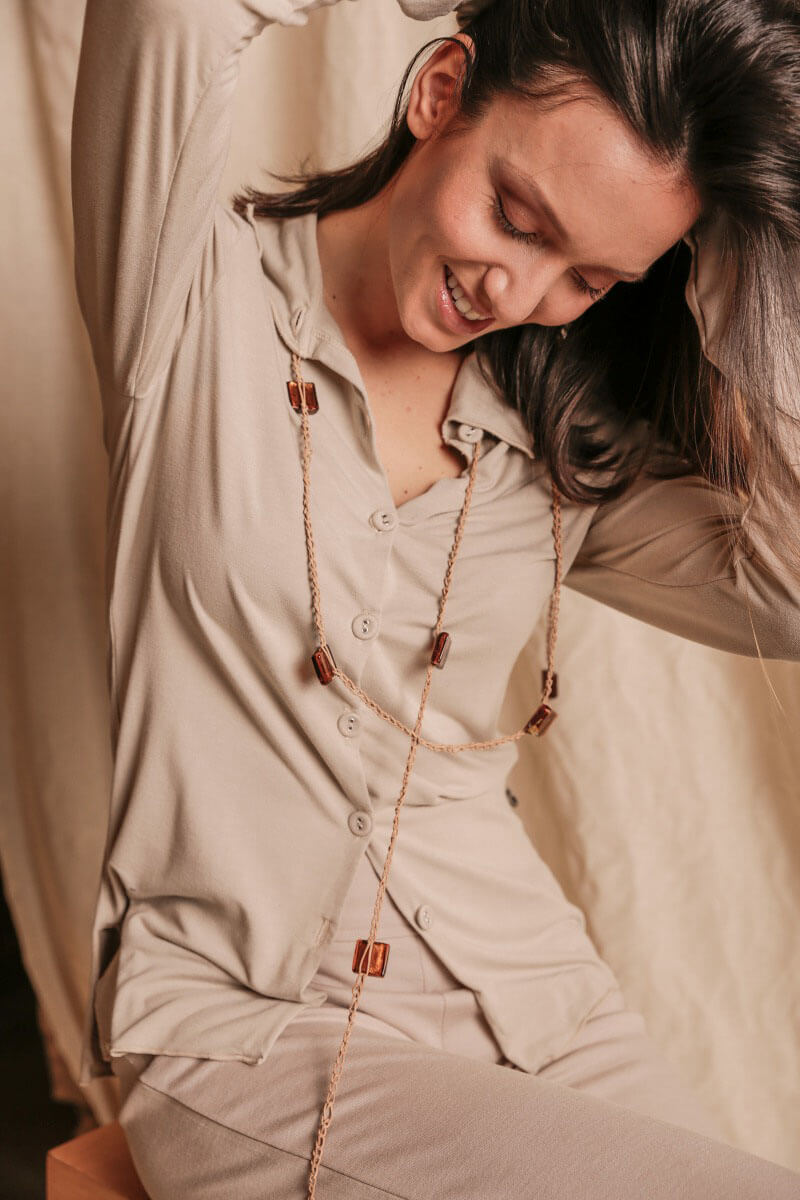 Martina is pure perfection if shirts belong to your favourite style. The high-quality bamboo knit makes it super comfortable and nicely breathable to wear while the elegant design and pretty details, such as cuffed sleeves with a small split and buttons covered in the same bamboo knit, make for a refined feminine look. You’ll wear it not only as the classical shirt but also as a cardigan or light jacket. A truly clever investment in a meaningful fashion item.